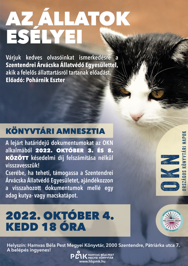 Helyszín: Hamvas Béla Pest Megyei Könyvtár, olvasóterem, 2000 Szentendre, Pátriárka u. 7.