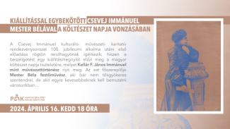 A Csevej Immánuel kulturális- művészeti- karitatív rendezvénysorozat 100. jubileumi alkalma utáni első előadása rögtön rendhagyónak ígérkezik, hiszen a beszélgetést egy kiállításmegnyitó előzi meg a magyar költészet napja tiszteletére, melyet Kellár F. János Immánuel mint művészettörténész nyit meg.