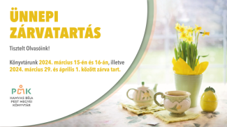 Könyvtárunk 2024. március 15-én és 16-án, illetve 2024. március 29. és április 1. között zárva tart.