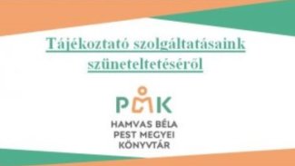 Tájékoztatjuk Önöket, hogy a Hamvas Béla Pest Megyei Könyvtár és a Püspökmajori Klubkönyvtár a kialakult veszélyhelyzetre tekintettel megelőző intézkedésként a személyesen igénybe vehető szolgáltatásait szünetelteti.