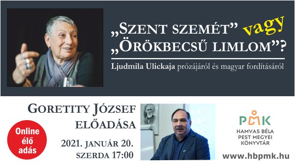 A 2000-es évek eleje óta Ljudmila Ulickajának, a világhírű orosz írónőnek szinte minden szépprózai írása megjelent magyarul. A művek jelentős részét a jelen program előadója fordította magyarra, aki azonban az Ulickaja – szövegeket nemcsak műfordítóként, hanem a kortárs orosz irodalom kutatójaként is olvassa. Előadásában e kétféle olvasatot érvényesítve beszél Ljudmila Ulickaja legjelentősebb műveinek értelmezési lehetőségeiről, „esztétikai titkairól ”, valamint fordításuk szépségéről és nehézségéről.