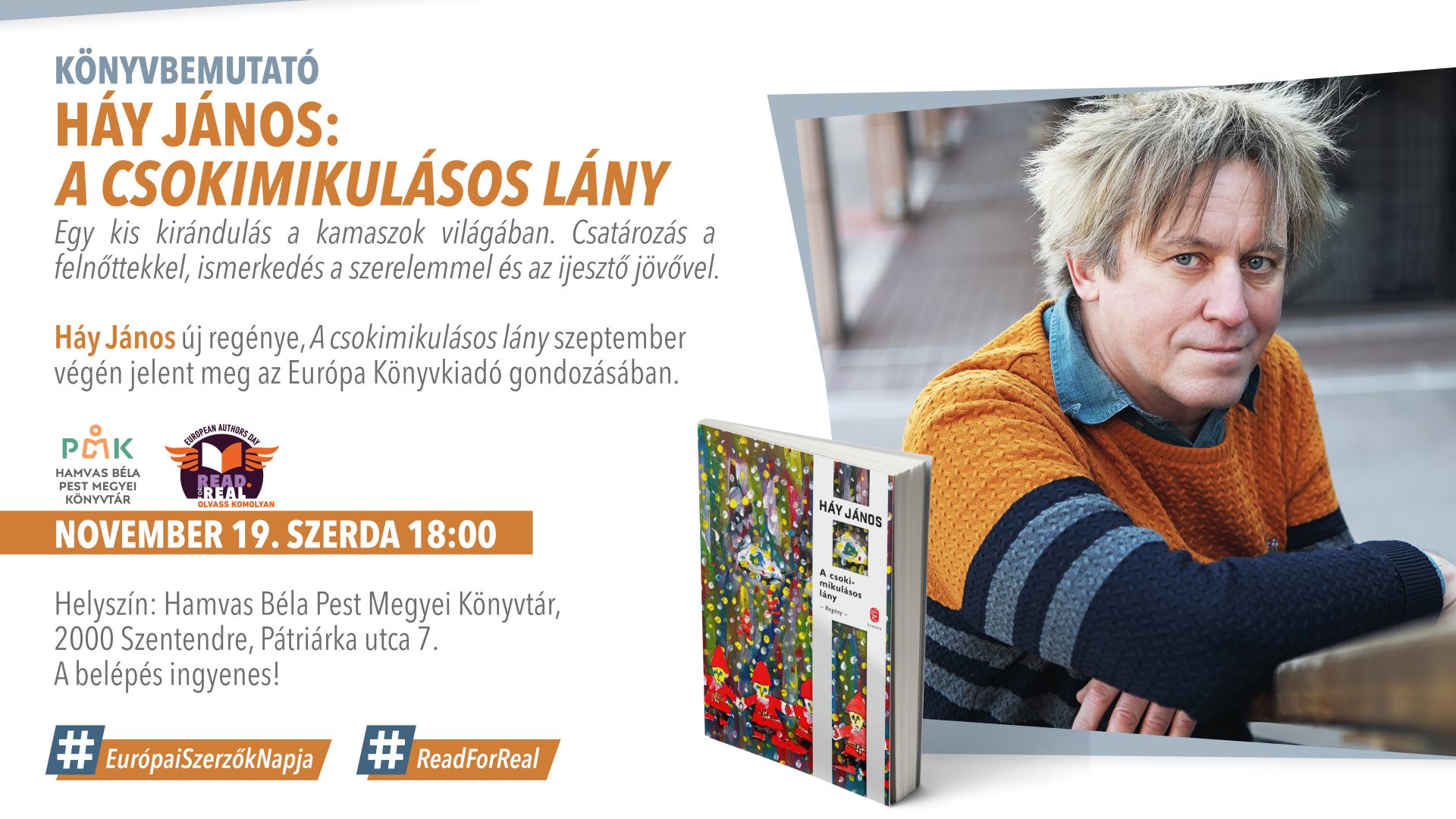 Háy János, József Attila-díjas magyar író, drámaíró, költő, illusztrátor. Az Európa Könyvkiadó gondozásában szeptember végén jelent meg új regénye, A csokimikulásos lány.