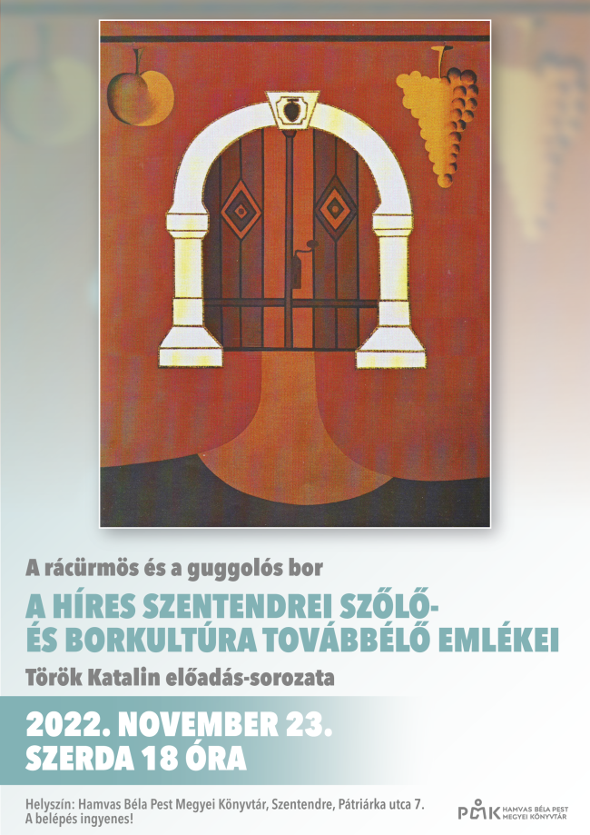 Helyszín: Hamvas Béla Pest Megyei Könyvtár, olvasóterem, 2000 Szentendre, Pátriárka u. 7.