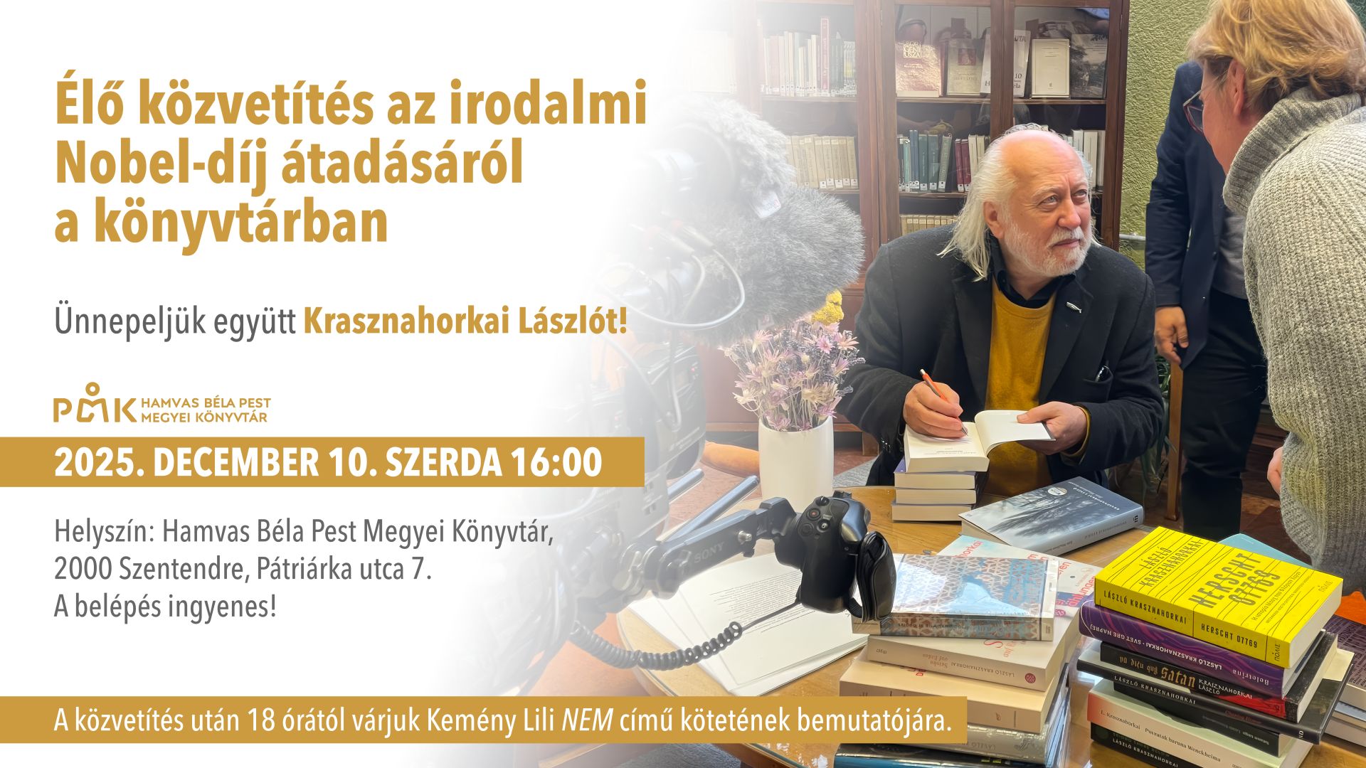 A közvetítés után 18 órától szeretettel várjuk Kemény Lili NEM című kötetének bemutatójára.