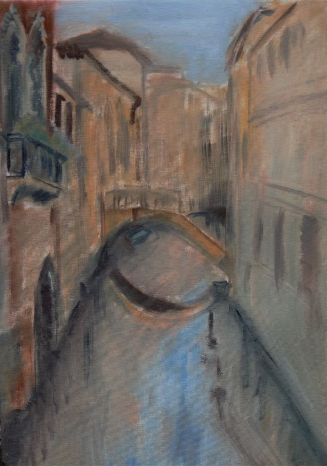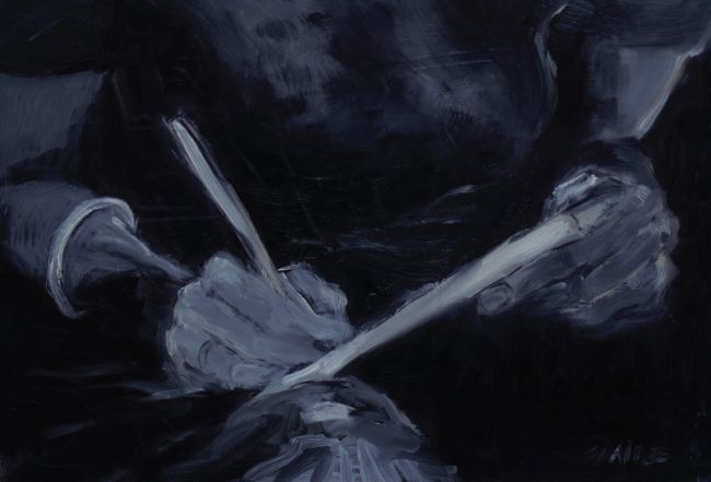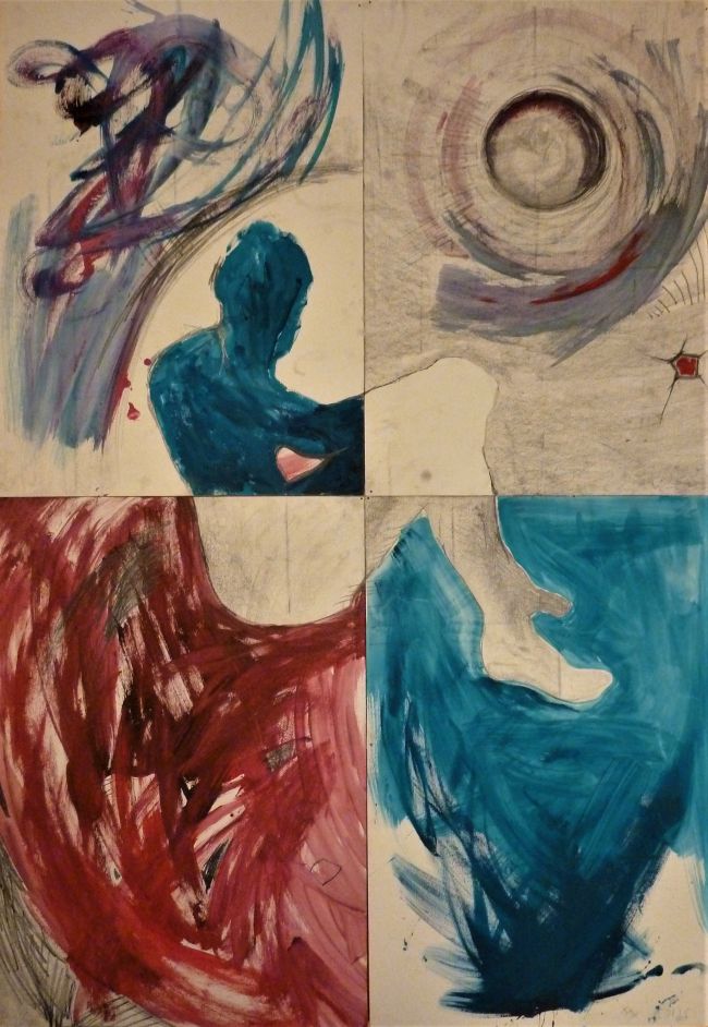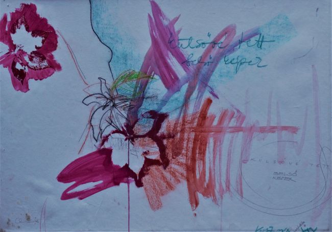 Magamról azt mondhatom, hogy van egy hétköznapi és egy alkotói életem. Alkotásaim nem műtermi környezetben készülnek. Gyakran olyan anyagokkal dolgozom, amik a kezem ügyébe kerülnek, mint például a KÚT c. képem, amit egy olyan nyersvászonra festettem, amin volt egy félkész hímzés.