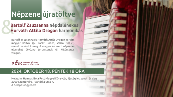 Helyszín: Hamvas Béla Pest Megyei Könyvtár, ifjúsági és zenei részleg, 2000 Szentendre, Pátriárka utca 7.