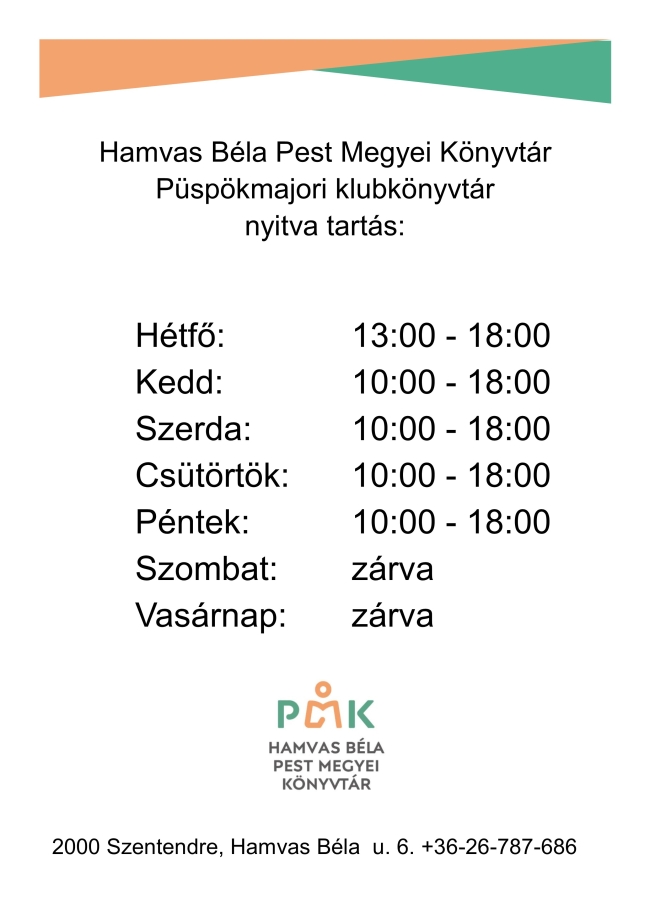 Püspökmajori Klubkönyvtárunk 2020. február 28-tól pénteki napokon is nyitva tart.