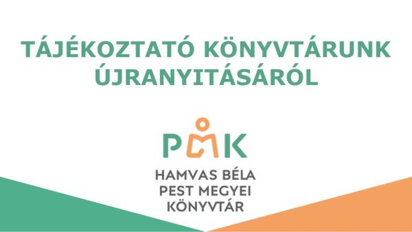 Örömmel tájékoztatjuk Önöket, hogy könyvtárunk 2020.06.15-től korlátozott nyitvatartással és szolgáltatásokkal ismét látogatható.