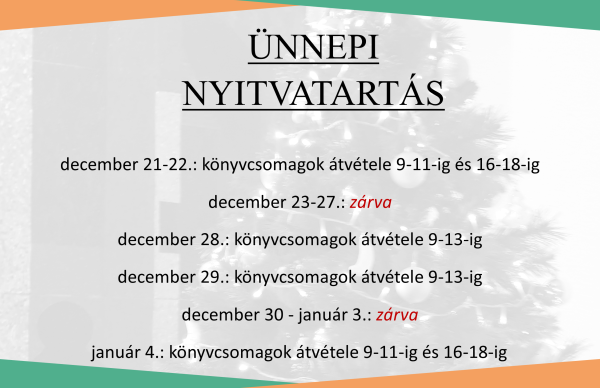 december 21-22.: könyvcsomagok átvétele 9-11-ig és 16-18-ig