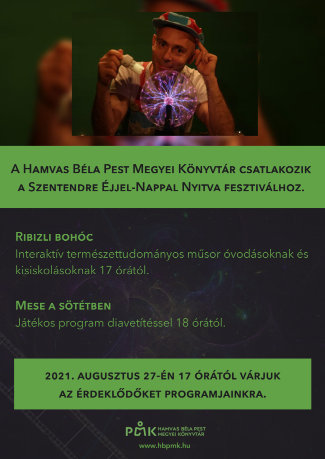 A Hamvas Béla Pest Megyei Könyvtár csatlakozik a Szentendre Éjjel-Nappal Nyitva fesztiválhoz.