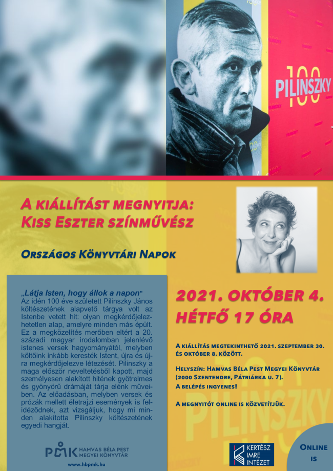 Helyszín: Hamvas Béla Pest Megyei Könyvtár (2000 Szentendre, Pátriárka u. 7).