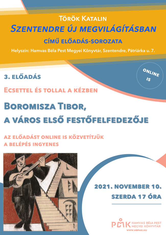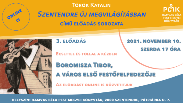 Helyszín: Hamvas Béla Pest Megyei Könyvtár, olvasóterem (2000 Szentendre, Pátriárka u. 7.).