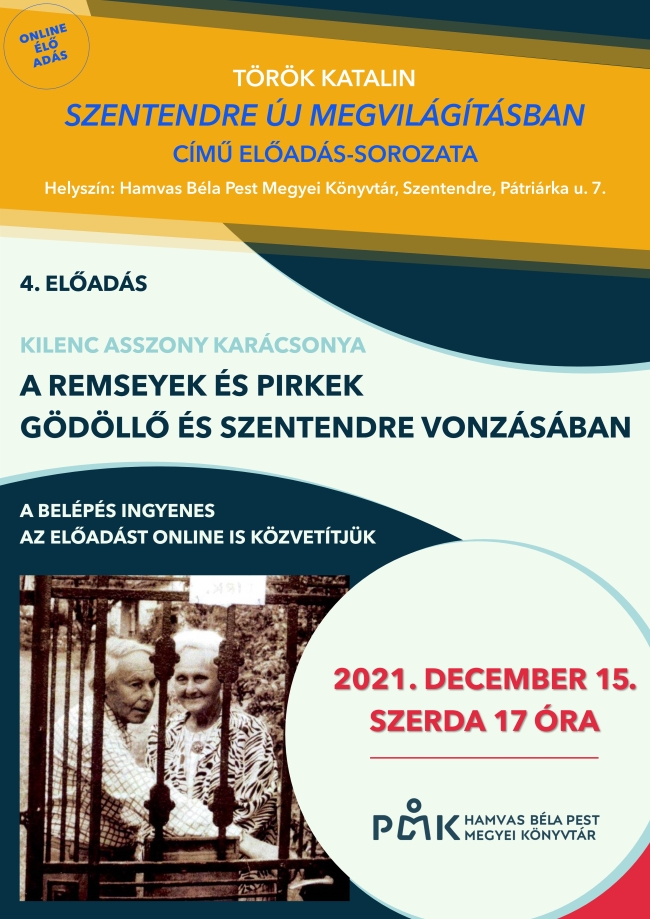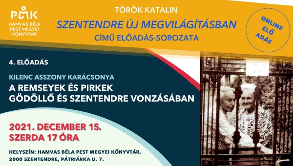 Helyszín: Hamvas Béla Pest Megyei Könyvtár, olvasóterem, 2000 Szentendre, Pátriárka u. 7.