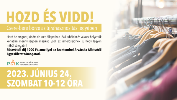 Hozd be megunt, kinőtt, de szép állapotban lévő ruháidat és válassz helyettük korlátlan mennyiségben másikat. Szólj az ismerőseidnek is, hogy legyen miből válogatni!