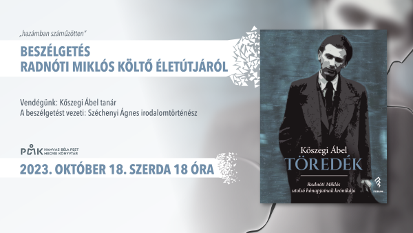 Kőszegi Ábel: Töredék - Radnóti Miklós utolsó hónapjainak krónikája. Ez a címe a könyvnek, amely nemrégiben jelent meg újra a Fórum Kiadónál. A cím arra utal, hogy a bori munkaszolgálat és a halálmenet története csupán töredéke annak, ami erről a korról Radnóti verseiből kiolvasható. Költészete - ebben a költőietlen korban is - közismert. Ám életéről és haláláról még ma is számos téveszme kering. Néhányuk eloszlatása nemcsak Radnóti korát, hanem költészetét is segítheti jobban érteni.