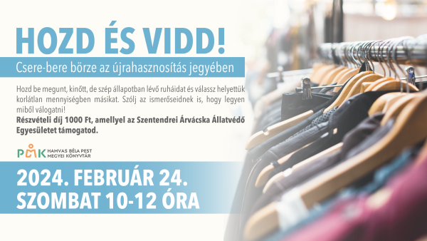 Hozd be megunt, kinőtt, de szép állapotban lévő ruháidat és válassz helyettük korlátlan mennyiségben másikat. Szólj az ismerőseidnek is, hogy legyen miből válogatni!